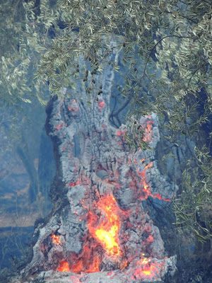 φαίνεται να έχει καεί το 1/7 με 1/6 του ελαιώνα, ποσοστό που ανταποκρίνεται