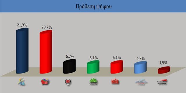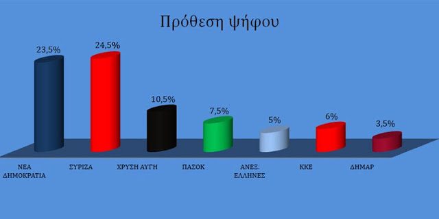 Ο ΣΥΡΙΖΑ προηγείται στην πρόθεση ψήφου με αναγωγή επί των εγκύρων με 24,5%