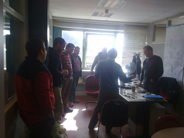 συνομιλεί με υπευθύνους των στοών στις εγκαταστάσεις