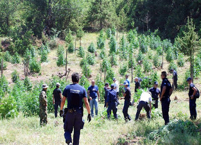 Ήδη μεσημέρι Δευτέρας και τα δενδρύλλια φορτώνονται με αυξημένα μέτρα ασφαλείας από την αστυνομία, ενώ μέχρι στιγμής δεν έχουν γίνει γνωστοί οι «ιδιοκτήτες» της χασισοφυτείας.