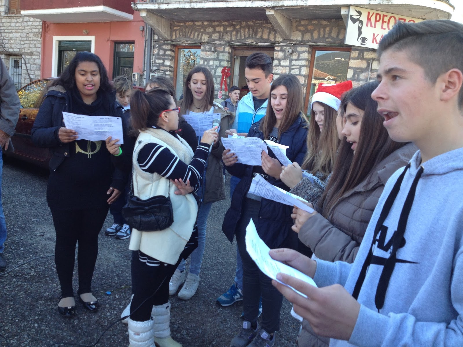 συνοδευόμενοι από τους καθηγητές τους και τους Διευθυντές Βασίλη Κατσιγιάννη και Νίκο Τριψιάνο, είπαν τα κάλαντα των