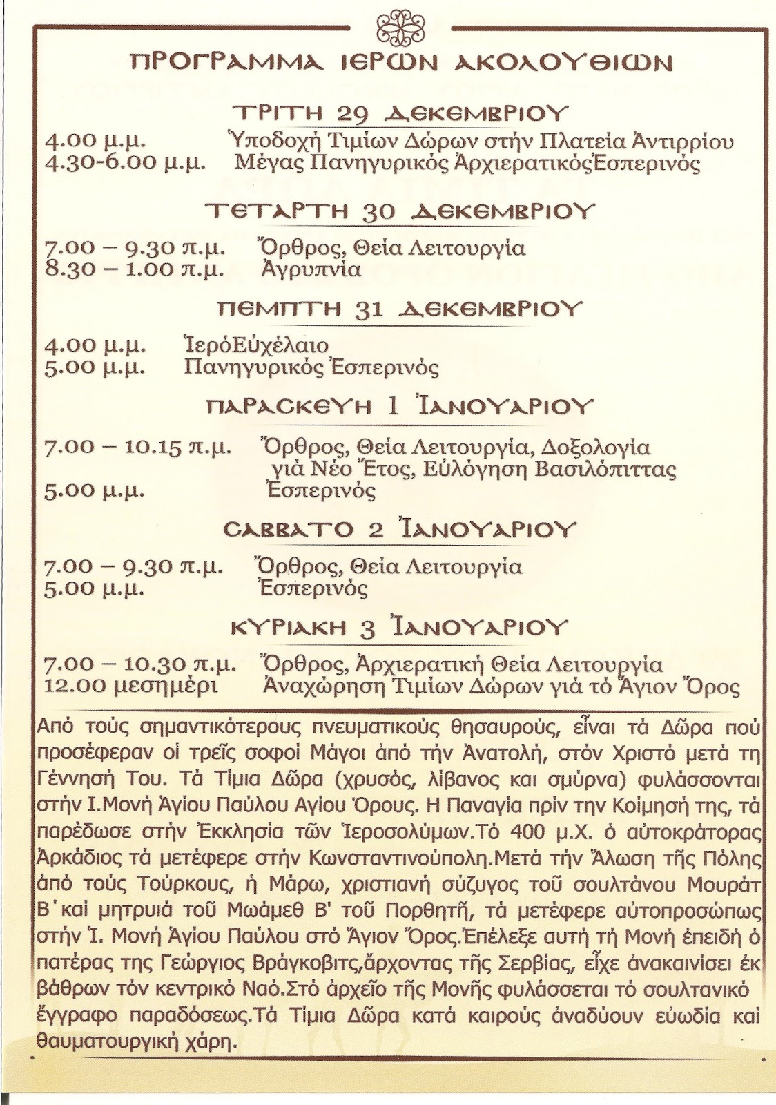 Από τούς σημαντικότερουςπνευματικούς θησαυρούς ολόκληρου του Χριστιανισμού, είναι τα Δώρα που