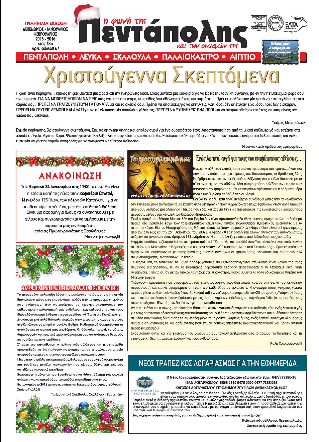 - Ευχές από το Δήμαρχο, τη συντακτική ομάδα και το σύλλογο για το νέο έτος