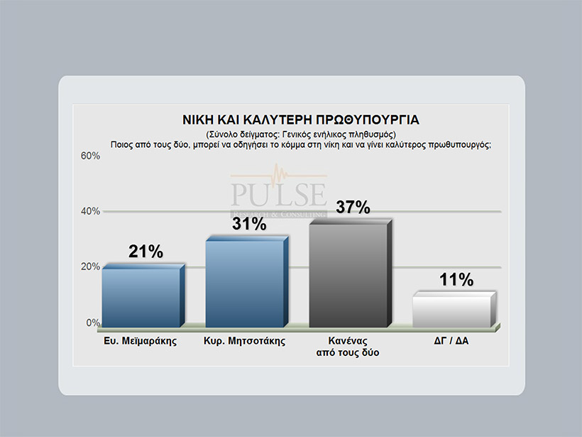 Δημοσκόπηση Pulse: Ο Μητσοτάκης «παίρνει» τα ποιοτικά στοιχεία, ο Μεϊμαράκης την παράσταση νίκης
