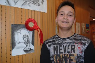 έργα. Μια κόκκινη κορδέλα κρεμάστηκε στα έργα των οκτώ μαθητών: της
