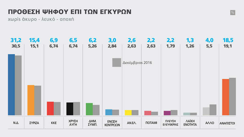 Ανοδικές τάσεις εμφανίζει το ΠΑΣΟΚ- Δημοκρατική Συνεργασία ενώ στα ίδια επίπεδα κινούνται ΚΚΕ και Χρυσή Αυγή.