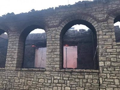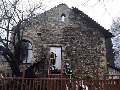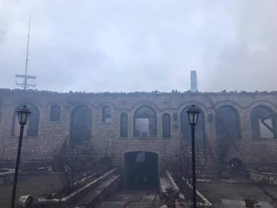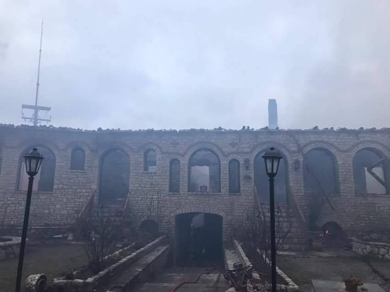 Άλλες πληροφορίες αναφέρουν ότι η πυρκαγιά προκλήθηκε από δύο ξυλόσομπες και άλλες από τον καυστήρα και αμέσως πήραν φωτιά τα κελιά τα οποία καίγονται.