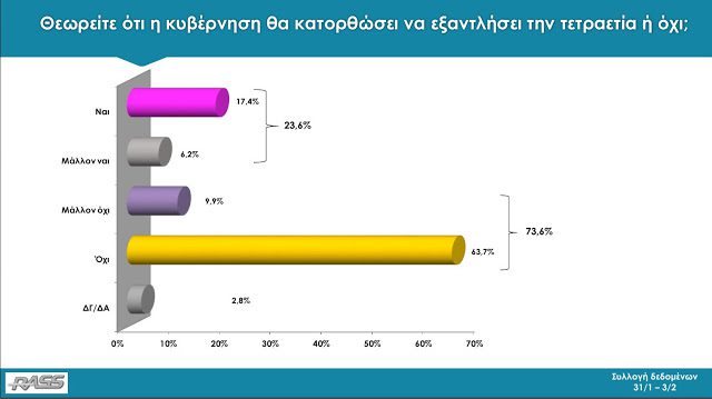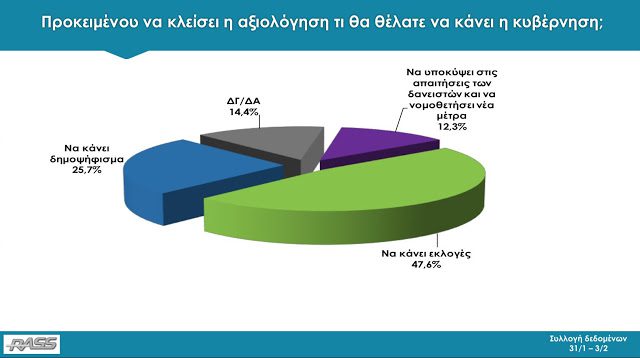 Η έρευνα διεξήχθη σε 1.504 εκλογείς στο διάστημα 31 Ιανουαρίου έως 3 Φεβρουαρίου και κατέγραψε περαιτέρω διεύρυνση της διαφοράς στην πρόθεση ψήφου υπέρ της ΝΔ.
