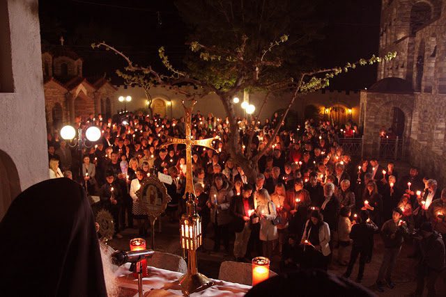 Ακολουθεί πλούσιο φωτογραφικό υλικό από το βράδυ της Ανάστασης και τον Εσπερινό της Αγάπης και την πανηγυρική μοναστηριακή τράπεζα.