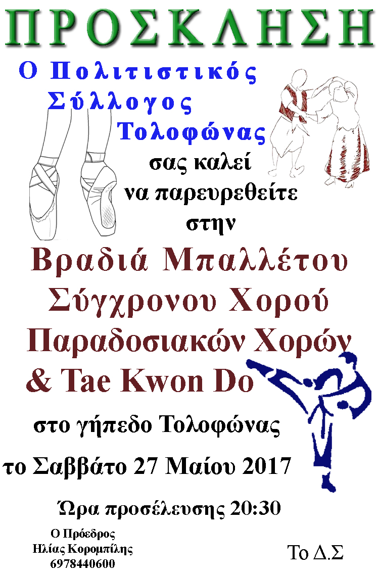 Βραδιά Μπαλλέτου και Σύγχρονου χορού από τον Πολιτιστικό Σύλλογο Τολοφώνας ΠΟΛΙΤΙΣΜΟΣΧωρίς κατηγορία Από DoridaNews Team Στις Μάι 23, 2017 Share - Διαφήμιση -Χρόνος ανάγνωσης: 6 λεπτά Συνεχίστε να διαβάσετε- Διαφήμιση - Share