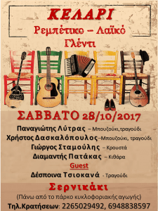 Ρεμπέτικο και λαϊκό γλέντι στο Σερνικάκι ΚΟΙΝΩΝΙΚΑ Από doridanews Στις Οκτ 26, 2017 Share - Διαφήμιση -Χρόνος ανάγνωσης: 1 λεπτό Συνεχίστε να διαβάσετε- Διαφήμιση - Share