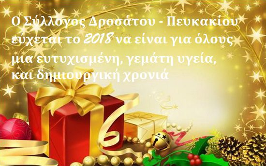 Ευχές από τον Σύλλογο Δροσάτου – Πευκακίου ΚΟΙΝΩΝΙΚΑ Από doridanews Στις Δεκ 31, 2017 Share - Διαφήμιση -Χρόνος ανάγνωσης: 1 λεπτό Συνεχίστε να διαβάσετε- Διαφήμιση - Share