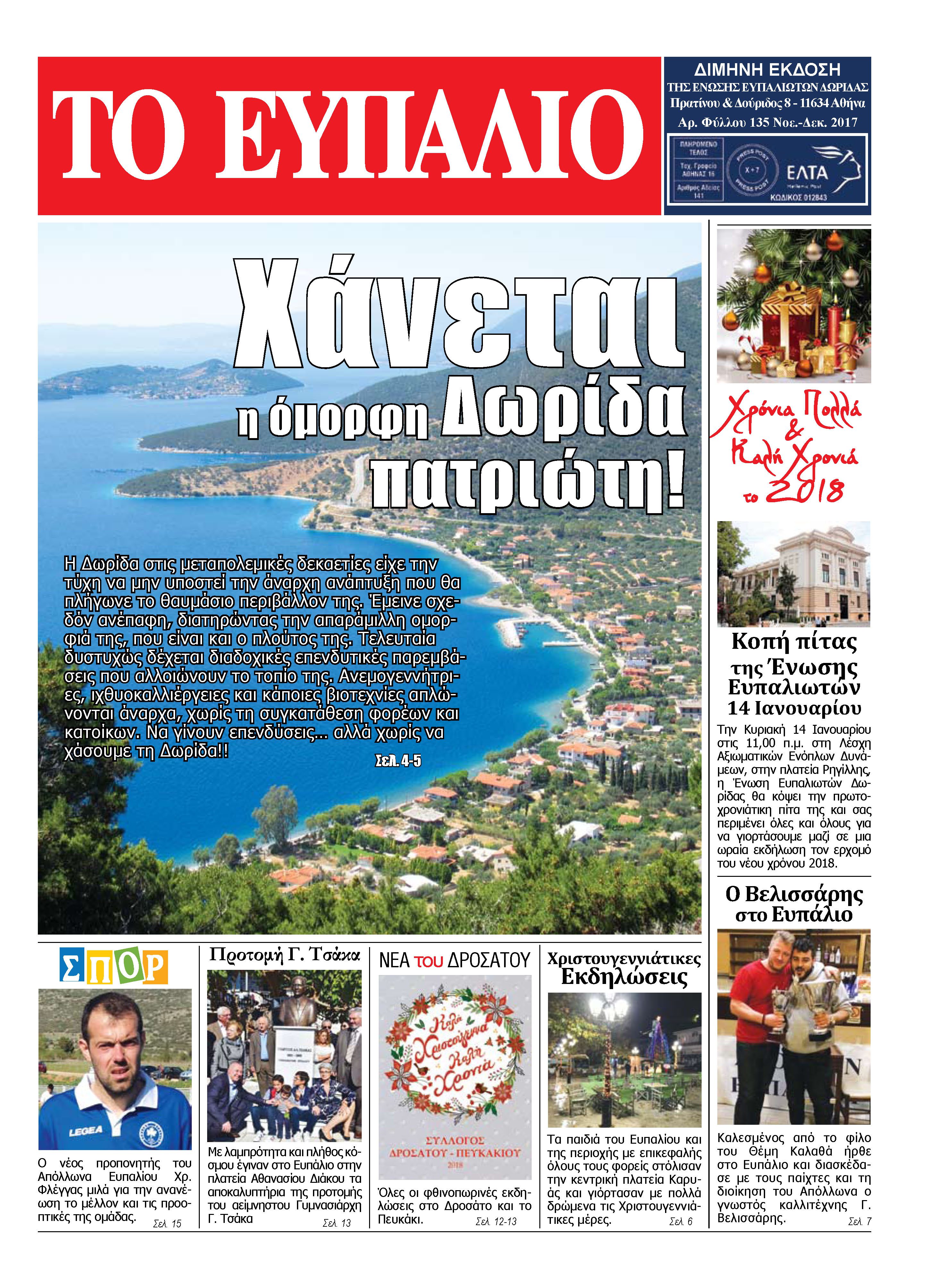 Με αρκετά ενδιαφέροντα και επίκαιρα θέματα που θα συζητηθούν κυκλοφόρησε το νέο τεύχος Δεκεμβρίου της εφημερίδας «Το Ευπάλιο».