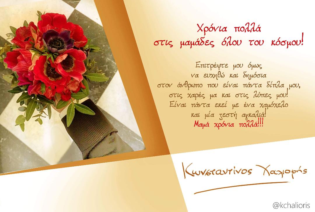 Ευχές του Κων.Χαλιορή στις μαμάδες του κόσμου ΚΟΙΝΩΝΙΚΑ Από doridanews Στις Μάι 13, 2018 Share - Διαφήμιση -Χρόνος ανάγνωσης: 1 λεπτό Συνεχίστε να διαβάσετε- Διαφήμιση - Share