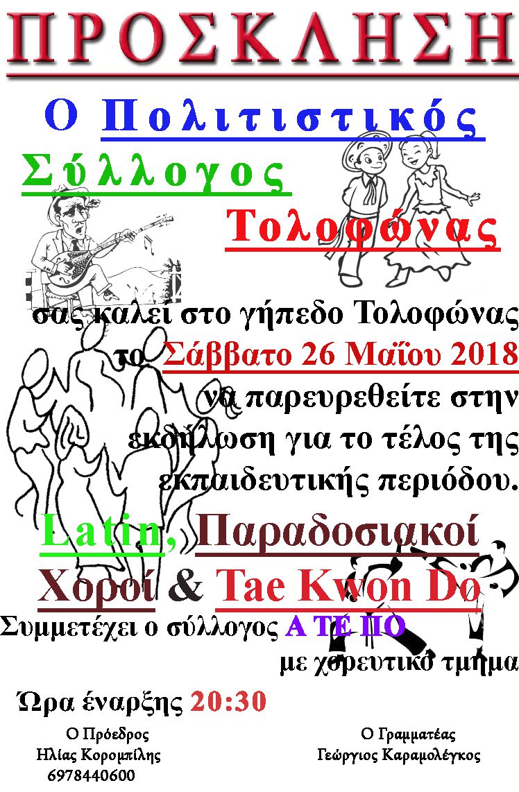 Εκδήλωση το Σάββατο Πολιτιστικού Συλλόγου Τολοφώνας ΚΟΙΝΩΝΙΚΑ Από doridanews Στις Μάι 23, 2018 Share - Διαφήμιση -Χρόνος ανάγνωσης: 1 λεπτό Συνεχίστε να διαβάσετε- Διαφήμιση - Share