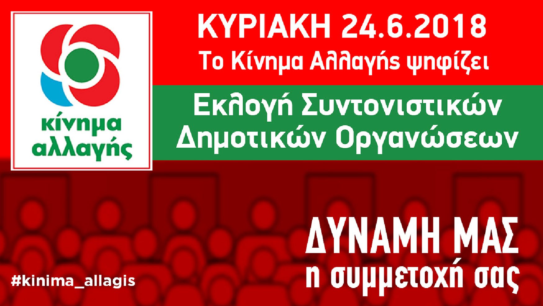 Το ΚΙΝΗΜΑ ΑΛΛΑΓΗΣ μετά τη συγκρότηση των Νομαρχιακών Επιτροπών προχωρεί ανά Καλλικρατικό Δήμο στη διεξαγωγή εκλογών για την ανάδειξη Συντονιστικών Γραμματειών στις Τ.Ο.