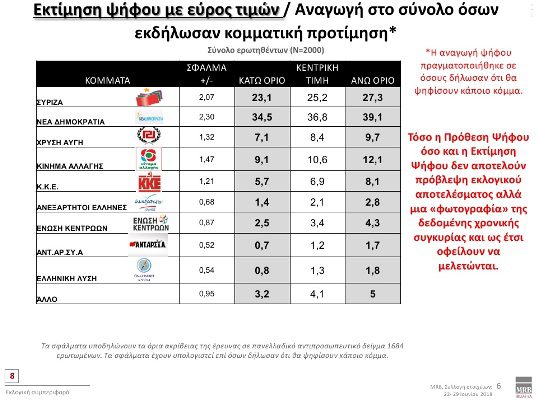 Με διαφορά 9,8% προηγείται η Νέα Δημοκρατία του ΣΥΡΙΖΑ ως προς την πρόθεση ψήφου που καταγράφεται στις τάσεις της MRB, και τρίτο κόμμα το Κίνημα Αλλαγής με 8,9%.