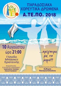 Παραδοσιακά χορευτικά δρώμενα στην Ερατεινή ΚΟΙΝΩΝΙΚΑ Από doridanews Στις Αυγ 9, 2018 Share - Διαφήμιση -Χρόνος ανάγνωσης: 1 λεπτό Συνεχίστε να διαβάσετε- Διαφήμιση - Share