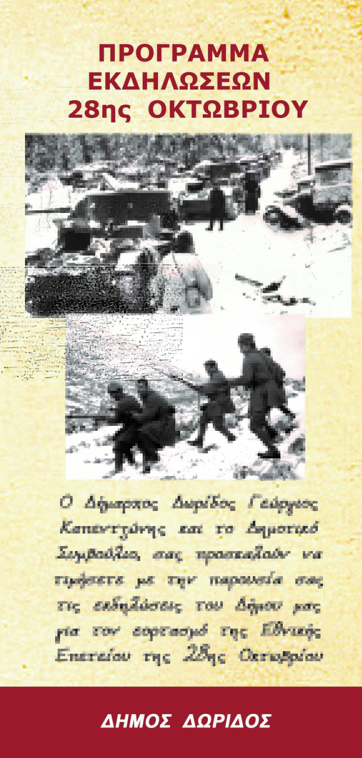 Πρόγραμμα εκδηλώσεων 28ης Οκτωβρίου στη Δωρίδα ΔΗΜΟΤΙΚΑ Από doridanews Στις Οκτ 23, 2018 Share - Διαφήμιση -Χρόνος ανάγνωσης: 4 λεπτά Συνεχίστε να διαβάσετε- Διαφήμιση - Share