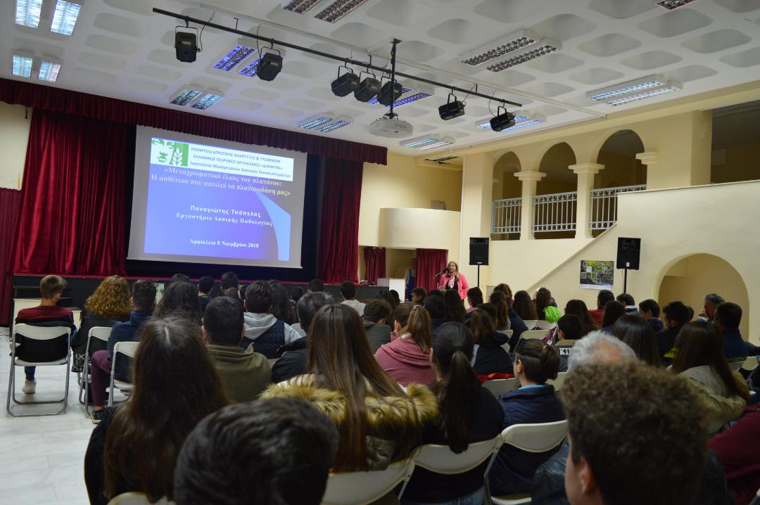 Φορέας Διαχείρισης Εθνικού Δρυμού Παρνασσού με θέμα: «Μεταχρωματικό έλκος του πλατάνου. Η ασθένεια που απειλεί τα πλατανοδάση μας», την Πέμπτη 8 Νοεμβρίου 2018 στο Πνευματικό Κέντρο Αμφίκλειας.