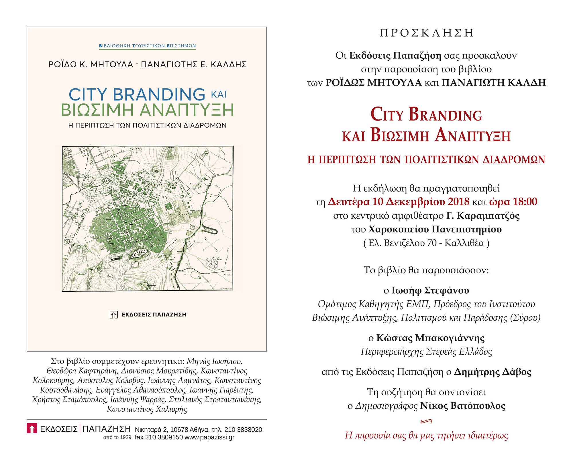 Οι συγγραφείς Ροϊδω Μητούλα και Παναγιώτης Κλάδης στην παρουσίαση του βιβλίου τους θα εξηγήσουν τη σημασία του City Branding (Προβολή Πόλεων) και πως αυτό επιδρά θετικά στη βιώσιμη ανάπτυξη, ειδικότερα σε περιπτώσεις πόλεων με πολιτιστικό απόθεμα.