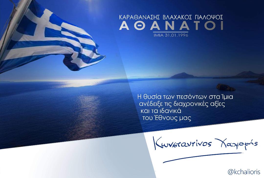 Η Ελληνική κυριαρχία στις νήσους Ίμια είναι γεγονός αναμφισβήτητο. Αποδεικνύεται από τα διεθνή κείμενα και από το γεγονός ότι η Ελλάδα άσκησε εκεί τα δικαιώματα της ανενόχλητα. Μέχρι προσφάτως δεν το αμφισβητούσαν ούτε και οι Τούρκοι. Πλήθος χάρτες ακόμα και Τουρκικοί δείχνουν τις νήσους αυτές στην Ιταλική πλευρά, μέχρι το 1947, και στην Ελληνική στην συνέχεια.