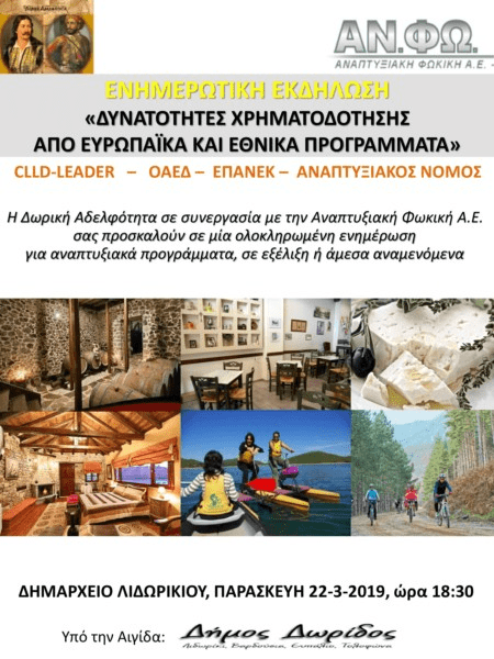 – η άλλη για χρηματοδότηση αναπτυξιακών προγραμμάτων σε επιχειρηματικές δραστηριότητες στη Δωρίδα.