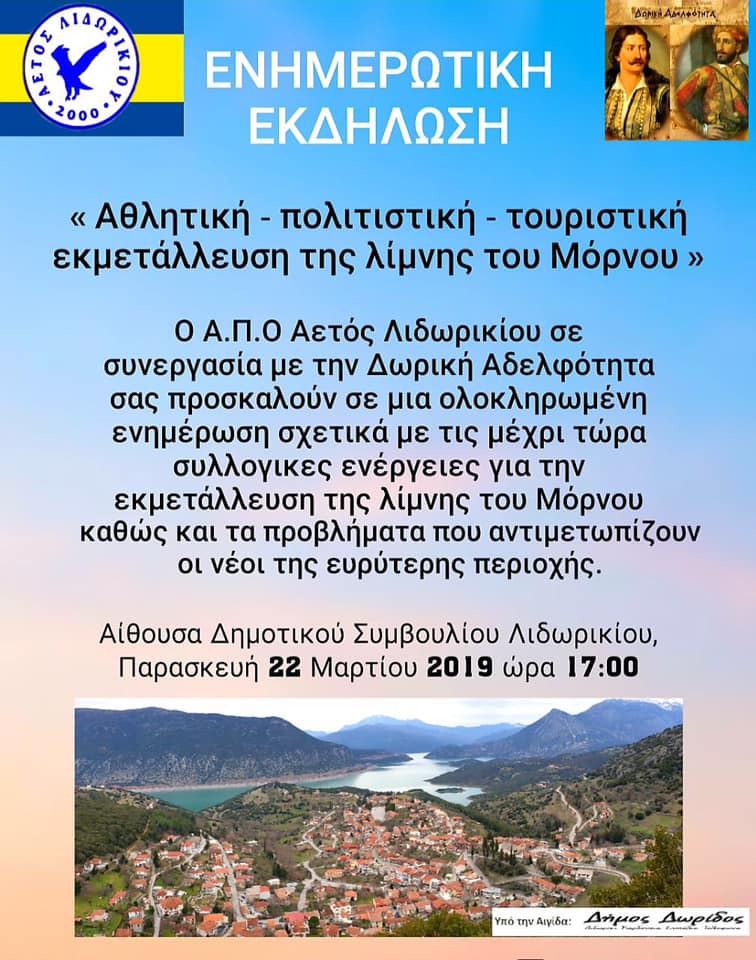– η μία για τουριστική αθλητική εκμετάλλευση της Λίμνης του Μόρνου και