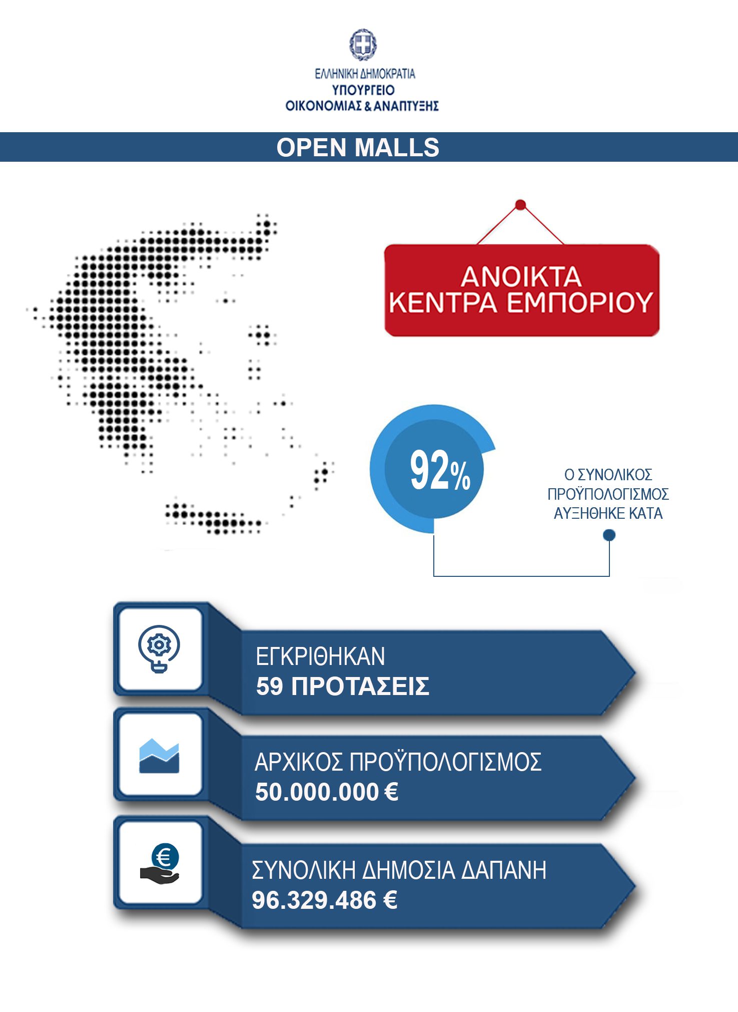 Είναι ακόμα μια σημαντική πρωτοβουλία της κυβέρνησης για την ενίσχυση των τοπικών αγορών ολοκληρώνεται σήμερα. Συγκεκριμένα το Υπουργείο Οικονομίας και Ανάπτυξης ανακοίνωσε την έγκριση των δράσεων «Ανοικτά Κέντρα Εμπορίου» του Επιχειρησιακού Προγράμματος «Ανταγωνιστικότητα, Επιχειρηματικότητα, Καινοτομίας 2014 -2020».