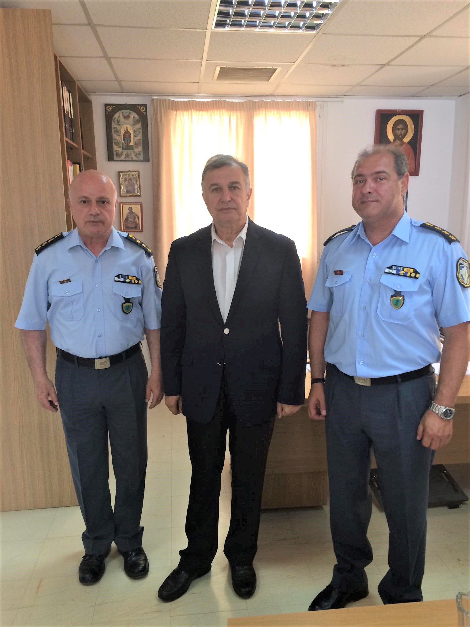 Στη συνέχεια είχε διαδοχικές συναντήσεις με την ηγεσία της Αστυνομίας και της Πυροσβεστικής στο Νομό καθώς και προσωπικό των σωμάτων ασφαλείας που του ζήτησαν ως στρατιωτικός γιατρός που είναι να στηρίξει και να δώσει λύσεις σε θέματα που αφορούν τους ένστολους.