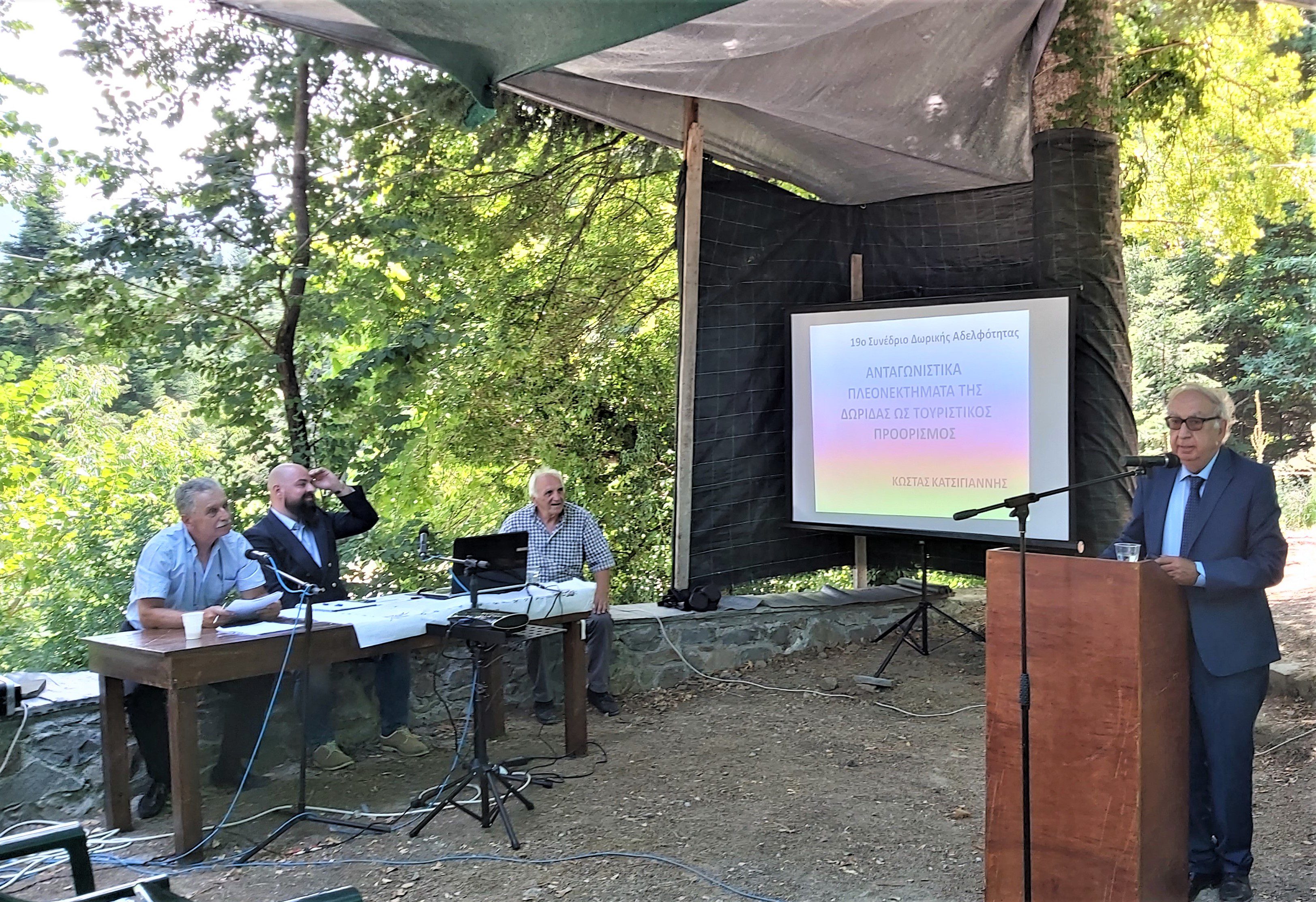 - Ανταγωνιστικά πλεονεκτήματα Δωρίδας ως τουριστικός προορισμός, Κώστας Κατσιγιάννης, τ. Γενικός Διευθυντής ΕΟΤ, Πολιτικός Μηχανικός ΕΜΠ, ο οποίος στηριζόμενος στα πρόσφατα στοιχεία μελετών για την ικανοποίηση των τουριστών και με αφορμή τα συμπεράσματα από το 18ο Συνέδριο της ΔΑ, κατέληξε ότι οι προοπτικές στηρίζονται στις ειδικές μορφές τουρισμού. Ειδικότερα αναφέρθηκε στο αλπικό τοπίο των Βαρδουσίων και το μονοπάτι Ε4 που αφορά πολλούς πεζοπόρους από όλο τον κόσμο, τον θρησκευτικό τουρισμό και βέβαια την «Δωρική Ριβιέρα»