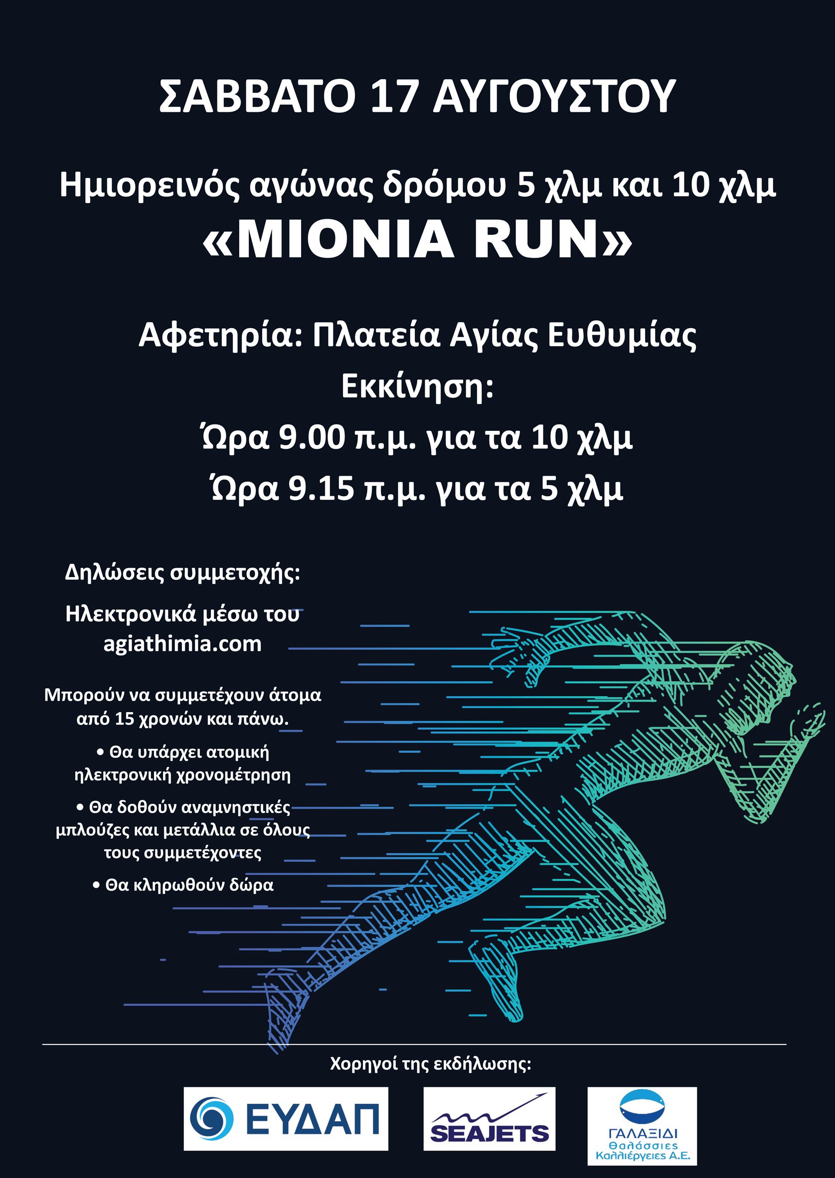 Το πρωί θα πραγματοποιηθεί ο 2ος Ημιορεινός αγώνας δρόμου Αγίας Ευθυμίας “MIONIA RUN”.