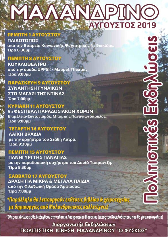 ΜΑΛΑΝΔΡΙΝΟ : Αυγουστιάτικες εκδηλώσεις του “Φύσκου”