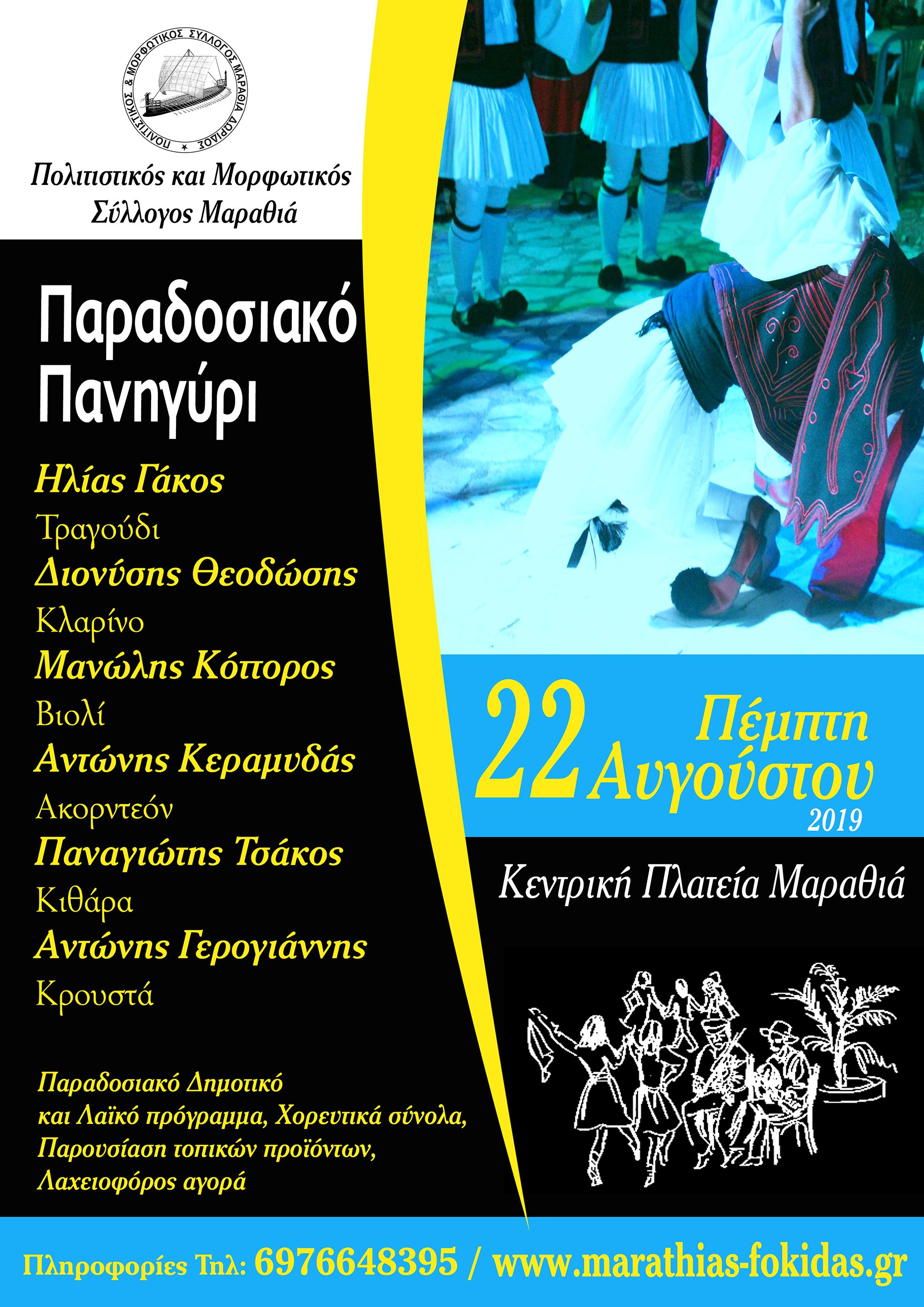Παραδοσιακό πανηγύρι 22 Αυγούστου στον Μαραθιά
