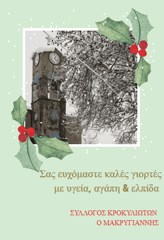 Ευχές του Συλλόγου Κροκυλιωτών “Ο Μακρυγιάννης” ΚΟΙΝΩΝΙΚΑ Από doridanews Στις Δεκ 24, 2019 Share - Διαφήμιση -Χρόνος ανάγνωσης: 1 λεπτό Συνεχίστε να διαβάσετε- Διαφήμιση - Share