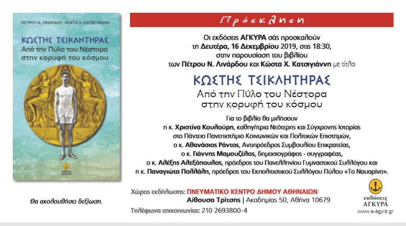 Παρουσίαση βιβλίου για τον Ολυμπιονίκη Τσικλητήρα των Πέτρου Λινάρδου και του Δωριέα Κώστα Χρ.Κατσιγιάννη