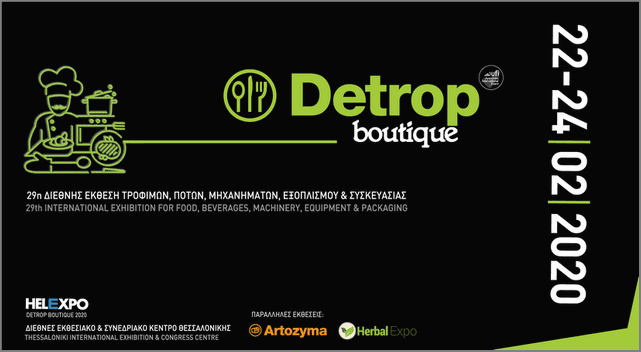 Στην 29η Διεθνή Έκθεση Τροφίμων, Ποτών , Μηχανημάτων, Εξοπλισμού & Συσκευασίας Detrop Boutique, η οποία θα πραγματοποιηθεί από 22 έως και 24 Φεβρουαρίου 2020, στο Διεθνές Εκθεσιακό & Συνεδριακό Κέντρο Θεσσαλονίκης θα συμμετάσχει η Περιφέρεια Στερεάς Ελλάδας