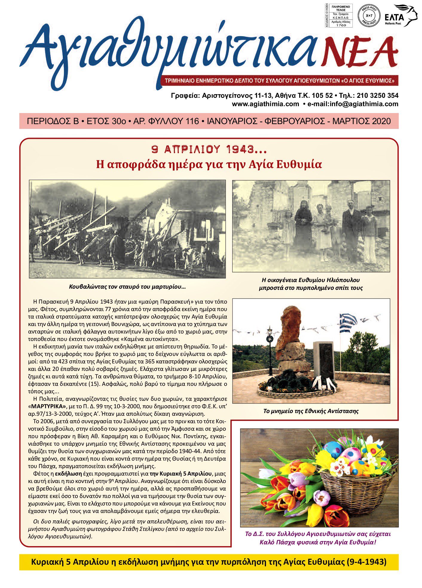 - Κείμενο για την συμπλήρωση 77 χρόνων από την πυρπόληση της Αγίας Ευθυμίας (9 Απριλίου 1943).