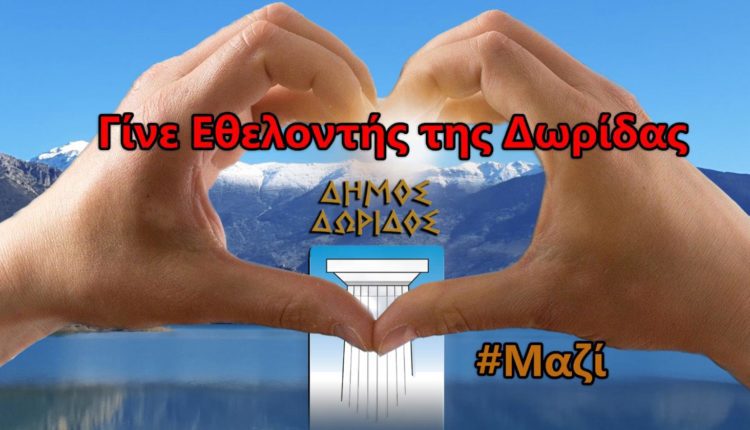 Καλούμε όλους τους συμπολίτες μας είτε κατοικούν στη Δωρίδα, είτε είναι ετεροδημότες να γίνουν Εθελοντές ή Εθελόντριες και να πάρουν μέρος στις δράσεις που προγραμματίζει ο Δήμος Δωρίδος.