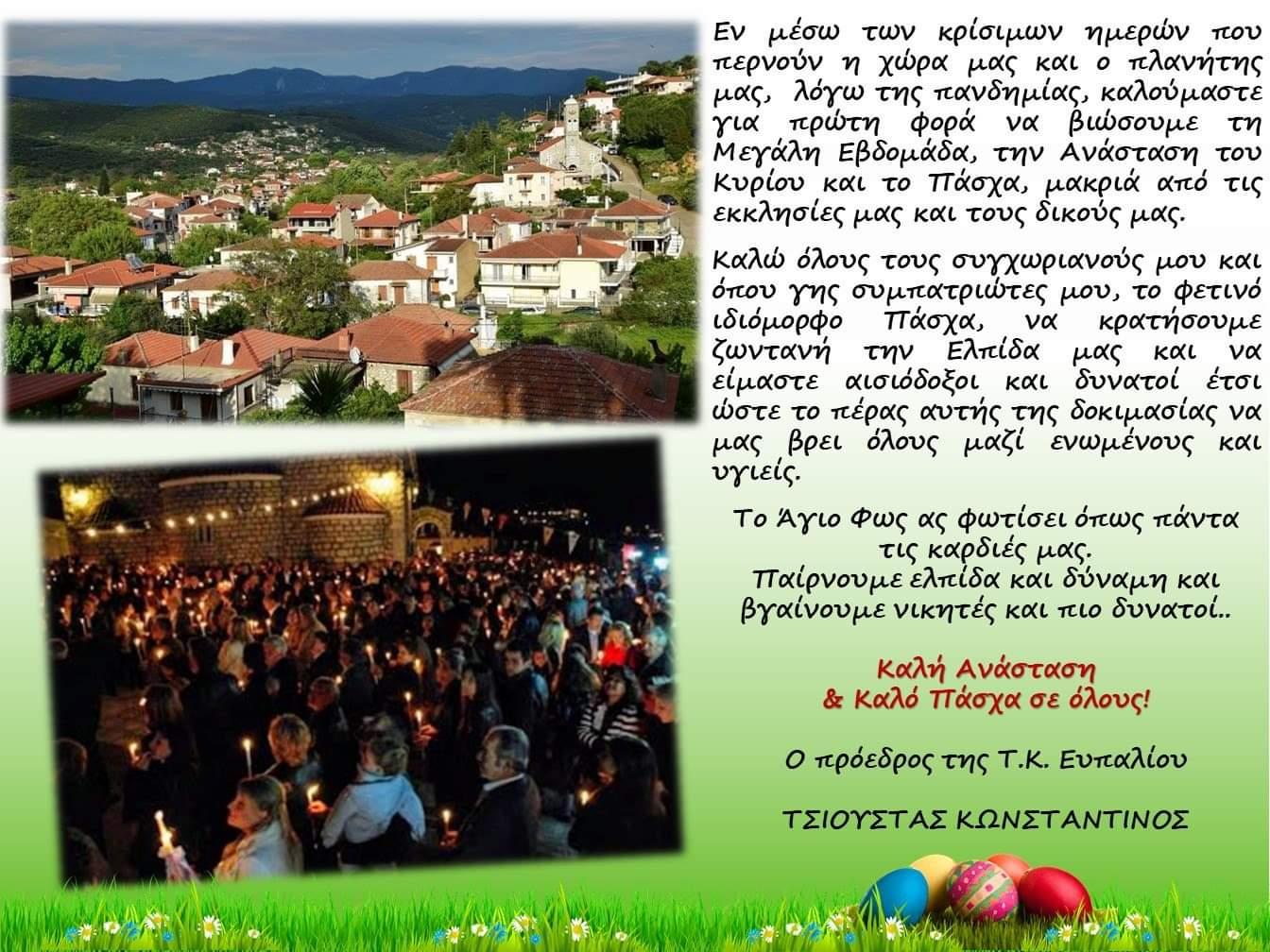 Πασχαλινό μήνυμα του Προέδρου Ευπαλίου Κ.Τσιούστα