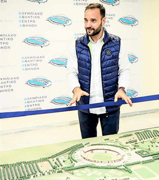 «Όλα αυτά θα τα καθαρίσουμε, θα τα περιφράξουμε, θα βάλουμε σήμανση και θα δημιουργήσουμε μια πολιτιστική διαδρομή». Θησαυρούς φυσικά έχει ανακαλύψει και στις αχανείς αποθήκες του ΟΑΚΑ. Ήδη, μια μακέτα του ολυμπιακού συγκροτήματος του ’79 έχει ανασυρθεί και τοποθετηθεί σε χώρο της εισόδου του κτιρίου διοίκησης. «Ξέρετε ότι από κάτω υπάρχουν όλα τα υλικά της τελετής των Ολυμπιακών Αγώνων; Τα άρματα, όλα είναι εδώ κάτω» λέει, εξομολογούμενος την επιθυμία να δημιουργηθεί ένας μικρός εκθεσιακός χώρος.