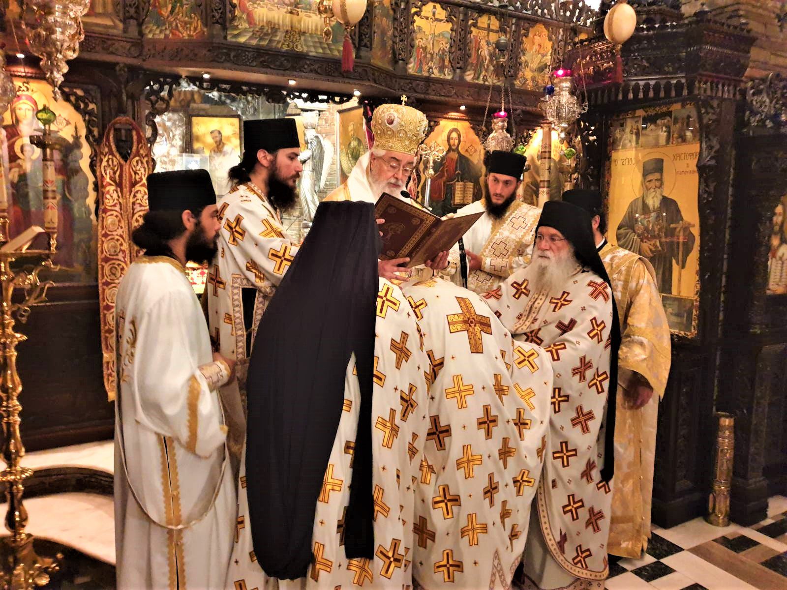 Στο τέλος της Θείας Λειτουργίας ο Μητροπολίτης χειροθέτησε στον βαθμό του Αρχιμανδρίτη τον ιερομόναχο Χρυσόστομο Παπαχαράλαμπο πτυχιούχο της Θεολογικής Σχολής Αθηνών.