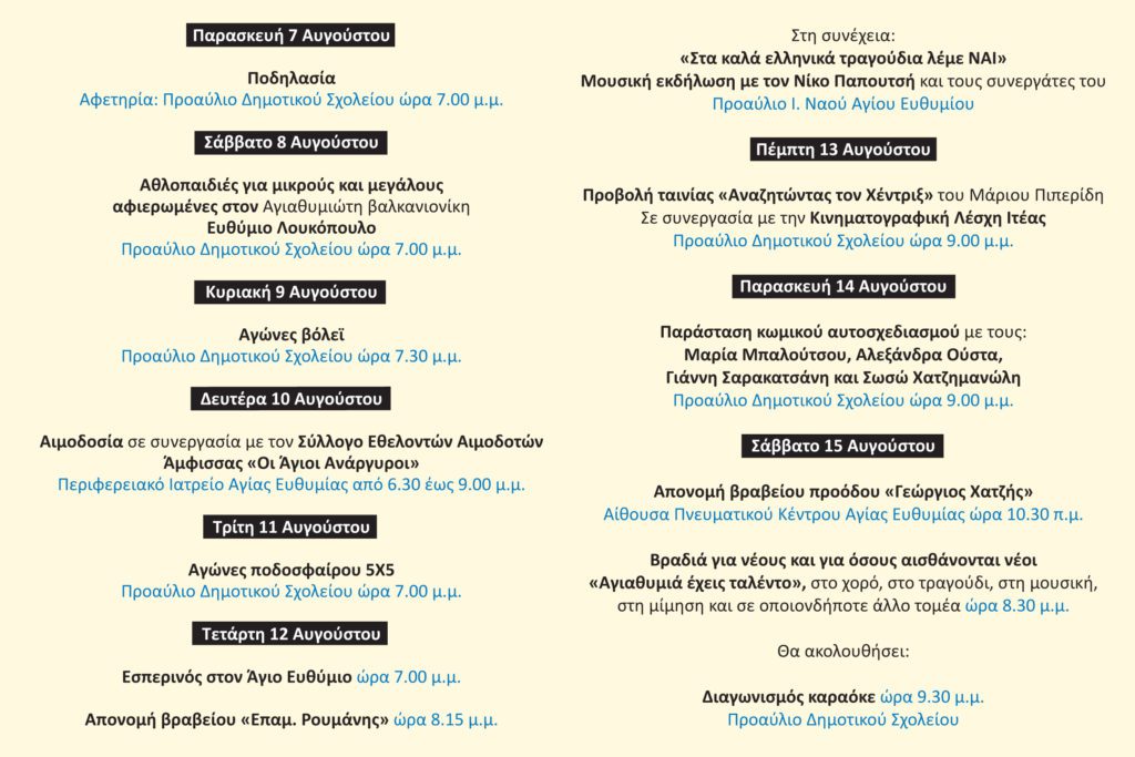 Αγία Ευθυμία: ΣΚΑΡΙΜΠΕΙΑ 2020 (2-15 Αυγούστου, δείτε όλο το πρόγραμμα)