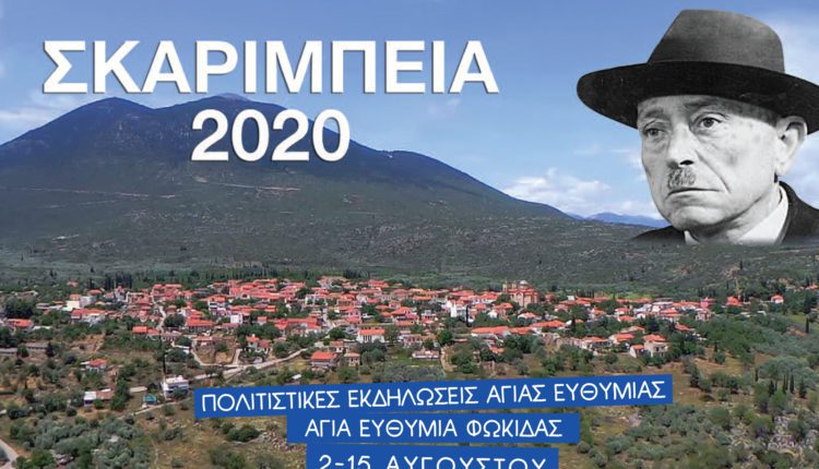 Σας παρουσιάζουμε το πλήρες πρόγραμμα των εκδηλώσεων ΣΚΑΡΙΜΠΕΙΑ 2020 το οποίο είναι προσαρμοσμένο στα δεδομένα των ειδικών συνθηκών που βιώνει ολόκληρος ο πλανήτης. Τα ΣΚΑΡΙΜΠΕΙΑ θα πραγματοποιηθούν για 26η συνεχή χρονιά στην Αγία Ευθυμία, την γενέτειρα του Γιάννη Σκαρίμπα και διοργανώνονται από τον Οργανισμό Πολιτιστικής Ανάπτυξης Στερεάς Ελλάδας (ΟΠΑΣΤΕ), την Κοινότητα Αγίας Ευθυμίας και τον Σύλλογο Αγιοευθυμιωτών “Ο Άγιος Ευθύμιος”.