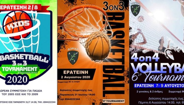 Ωραίες αθλητικές εκδηλώσεις με μπάσκετ και βόλεϊ, για μικρούς και μεγάλους, γυναίκες και άνδρες, διοργανώνει ο αθλητικός σύλλογος “ΔΩΡΙΔΑ ΑΣ” στην Ερατεινή τον Αύγουστο και όσοι πιστοί… προσέλθετε δηλώνοντας συμμετοχή. . .