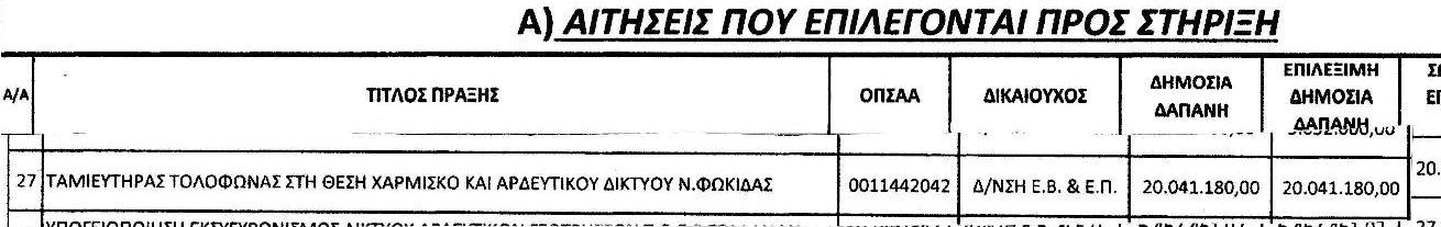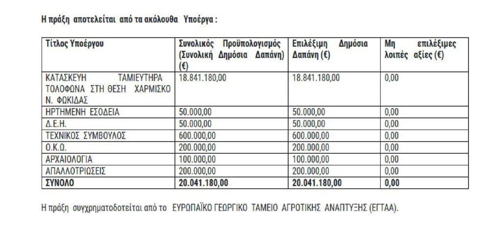 1. Ο Ταμιευτήρας Τολοφώνας στη θέση Χάρμισκο ξεκίνησε από το 2007, έμεινε στα αζήτητα (και από τον τότε και τώρα βουλευτή της ΝΔ) και δεν εντάχθηκε στο ΕΣΠΑ 2007 – 2013 όπου και είχαν ενταχθεί τα φράγματα στην υπόλοιπη Ελλάδα, αλλά όχι και στην ξεχασμένη Φωκίδα. Από το 2017 με την χειρουργική παρέμβαση Κωστοπαναγιώτου στον τότε Αν. Υπουργό Οικονομικών Γ.Χουλιαράκη και μετά στον τότε ΥΠΑΑΤ Στ. Αραχωβίτη τελικά το έργο ΕΝΤΑΧΘΗΚΕ στο ΕΣΠΑ ΠΑΑ 2014-2020 και ΧΡΗΜΑΤΟΔΟΤΗΘΗΚΕ με 20.041.180 ευρώ επί ΣΥΡΙΖΑ. Επισυνάπτεται η απόφαση για χρηματοδότηση.