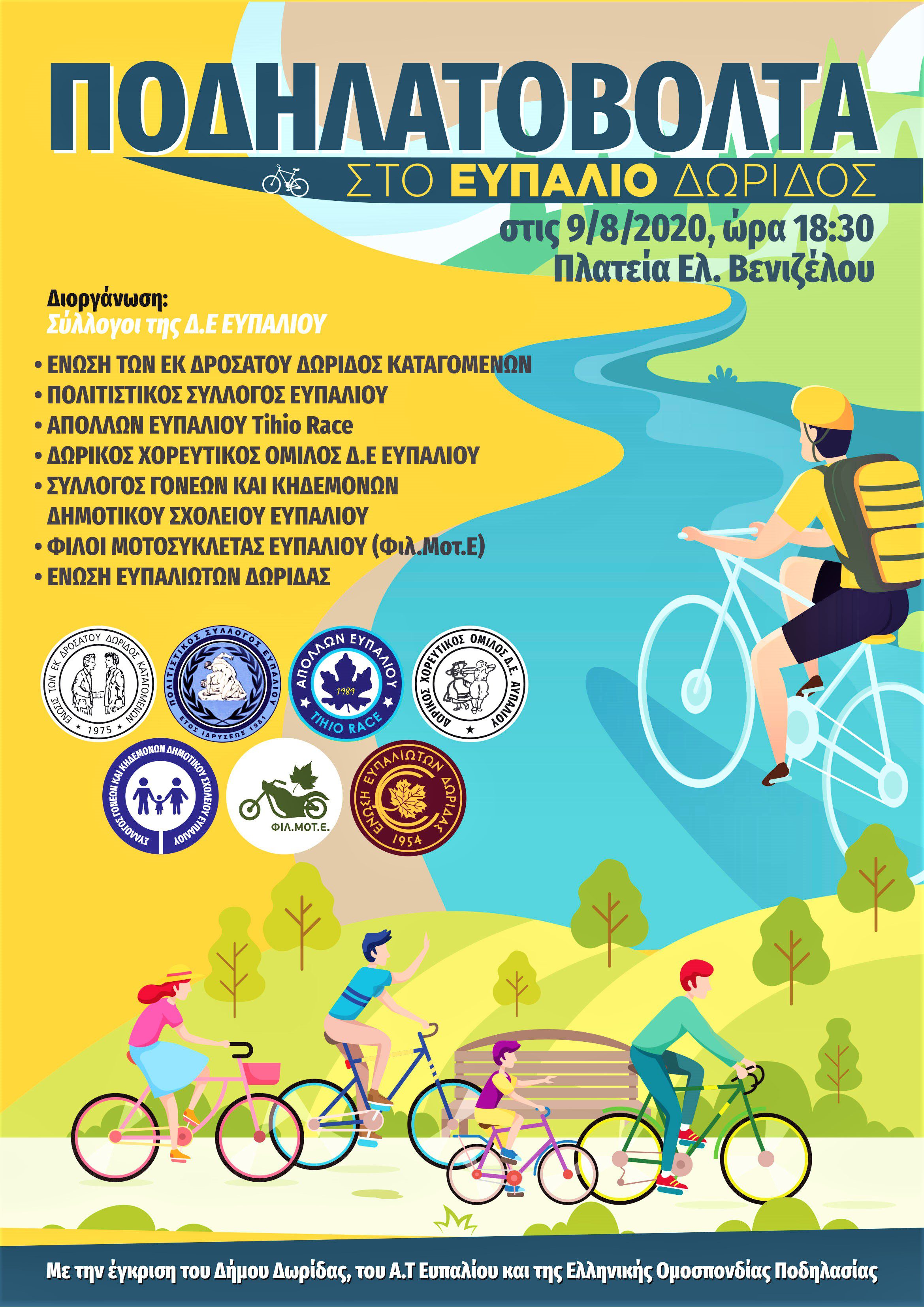 Έναν όμορφο κι ευχάριστο “ποδηλατικό περίπατο” για παιδιά κάθε ηλικίας διοργανώνουν Σύλλογοι της Δ.Ε. Ευπαλίου την Κυριακή 9 Αυγούστου ώρα 18:30 το απόγευμα στο Ευπάλιο.