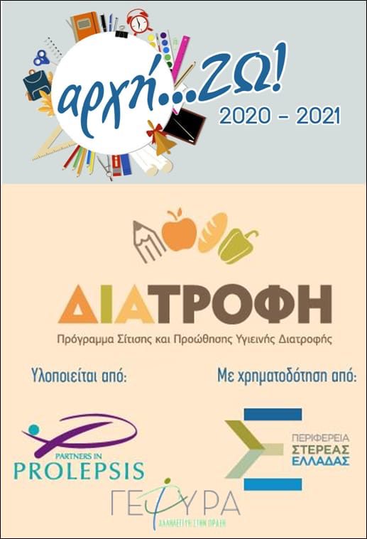 Για μια ακόμη σχολική χρονιά, με χρηματοδότηση της Περιφέρειας Στερεάς Ελλάδας και τη συνδρομή της δομής «ΓΕΦΥΡΑ», συνεχίζονται το Πρόγραμμα Σίτισης και Προώθησης Υγιεινής Διατροφής – ΔΙΑΤΡΟΦΗ και η Δράση «αρχή…ΖΩ».