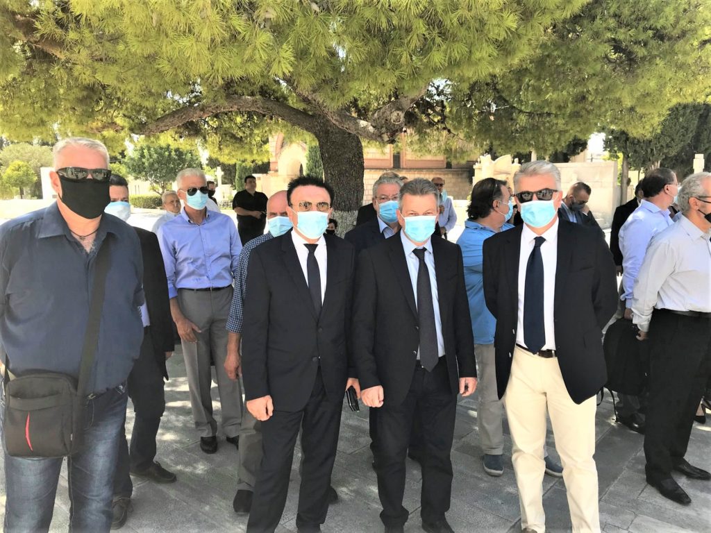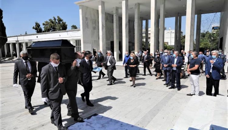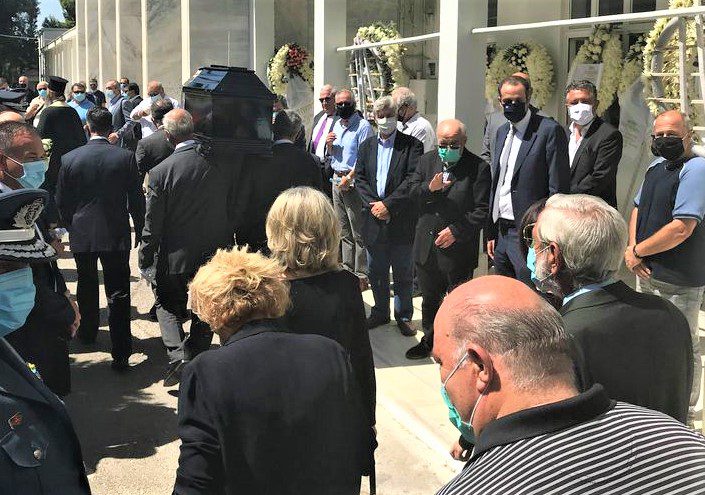 Με τα απαραίτητα μέτρα προστασίας της δημόσιας υγείας να εφαρμόζονται στο ακέραιο, οι οικείοι του δέχτηκαν από απόσταση τα συλλυπητήρια του κόσμου που είχε συγκεντρωθεί στο Α` Νεκροταφείο Αθηνών λίγο μετά τη μία το μεσημέρι.