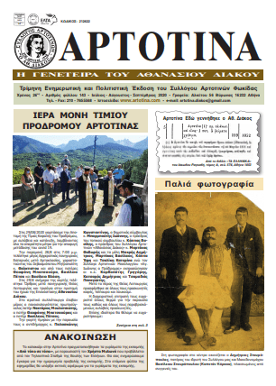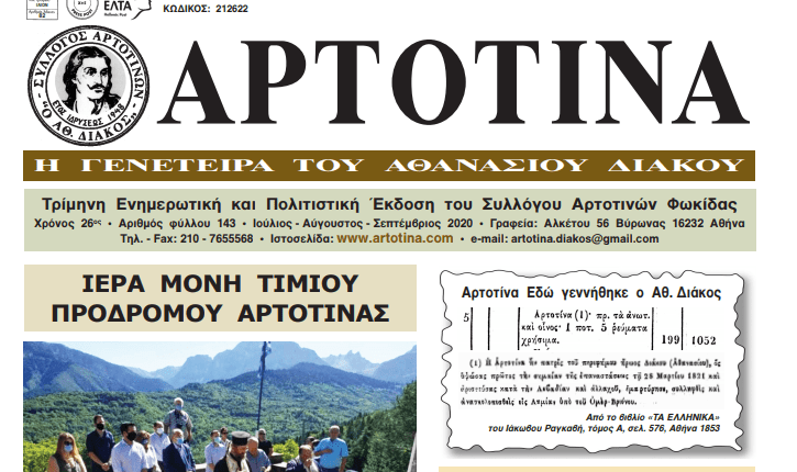 Με ενδιαφέρουσα ιστορική, κοινωνική και πολιτιστική ύλη κυκλοφόρησε τον νέο τεύχος της εφημερίδας ΑΡΤΟΤΙΝΑ που εκδίδει ο Σύλλογος Αρτοτινών Αθήνας «Ο Αθανάσιος Διάκος».